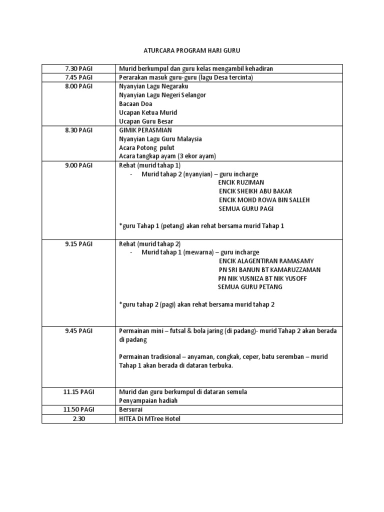 Aturcara Program Hari Guru Pdf